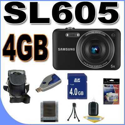 Best Price Samsung SL605 12.2MP Digital Camera w/5x Optical Zoom (Black) BigVALUEInc Accessory Saver 4GB Bundle